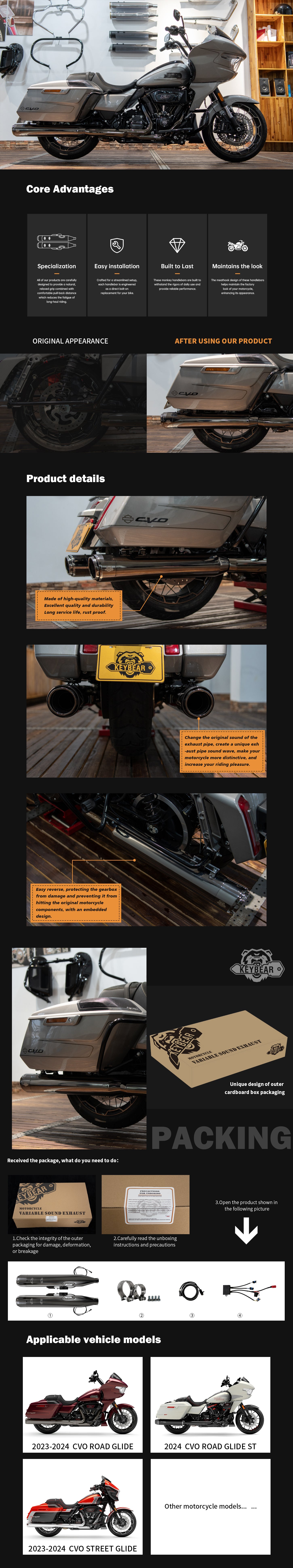 Harley Davidson modified variable sound exhaust for CVO Road Glide/CVO Street Glide/CVO Road Glide ST